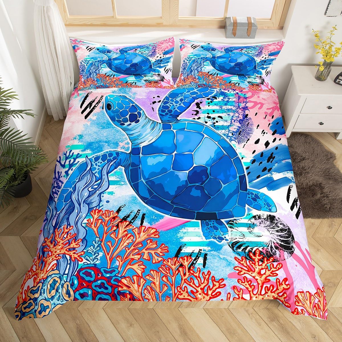 The good bedding shouldn’t just give you a better night sleep, it should also match your home decor seamlessly; the good combination of functionality and comfort, with striking unique designs, our bedding set are the bedding of your dreams; made from polyester and 3d printed with the latest technology, the duvet cover and pillow shams set will transform your bedroom, and help you sleep as a baby What makes our bedding so unique We specialized in home textile and we are contribute to provide better product; our unique 3d print patterns design duvet cover set collection will create a serene sleeping experience, leaving you feeling refreshed and rejuvenated Unique designs, we offer a wide selection of 3d printed designs, like gaming, tie dye,animal, ocean beach theme etc; vivid colors and unique designs match well with your all other decor accessories 100 percent brushed microfiber fabric is breathable, soft with a high tensile strength which making it feel like you’re being gently cuddled when you sleep inside them Easy to care for: Machine wash in cold and dries quick on tumble dry low Range of sizes Twin size 1 duvet cover: 68 inch x 90 inch 1 pillow sham:20 inch x 30 inch Full size 1 duvet cover: 79 inch x 91 inch 2 pillow shams: 20 inch x 30 inch Queen size 1 duvet cover: 90 inch x 90 inch 2 pillow shams: 20 inch x 30 inch King size 1 duvet cover: 104 inch x 90 inch 2 pillow shams: 20 inch x 36 inch Choose us and transform your bedroom and sleeping experience